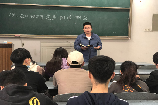 為了強化班委體系建設,更好地發揮班委在同學與老師之間的紐帶作用,使日后的研究生班級活動順利開展。11月3日,我院于博學樓B305召開第一次研究生班委例會。此次例會由輔導員徐余躍主持,2019級與2020級全體研究生班委參加。