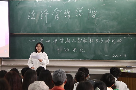 10月14日下午我院于博學(xué)樓B502舉行2021年秋季學(xué)期入黨積極分子培訓(xùn)班開班儀式,我院黨委書記黨劉栓、21級輔導(dǎo)員李昕露,研究生第一黨支部副書記歐陽運(yùn)佳以及學(xué)院200名入黨積極分子參加開班儀式,由我院21級輔導(dǎo)員李昕露主持。