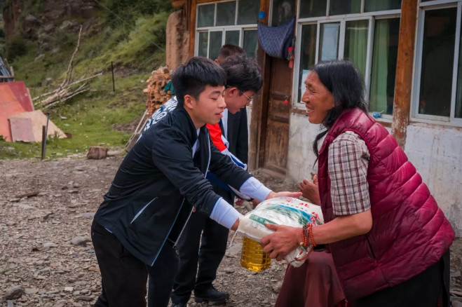 阿壩縣洛爾達鄉茍扎村位于四川省阿壩縣東南部,距離成都市區約500公里,建檔立卡貧困人口超過三分之一。2019年5月,中國宋慶齡基金會中國海油助學基金2019年度公益實踐活動正式啟動,項目高校西南石油大學的經濟管理學院積極申報公益實踐計劃,組建“耄耋通”公益團隊,錨準阿壩縣茍扎村的幫扶需求,自主策劃并踐行了“3+2”三維立體幫扶計劃和雙心宣傳研究方案——三維立體幫扶包括緣情治理幫扶計劃、技術幫扶、生活幫扶,雙心宣傳研究為提煉大學生參與脫貧攻堅的基本模式,錄制紀錄片提高扶貧干部的社會認同感。