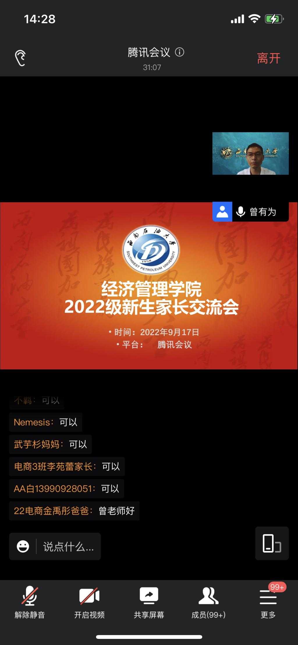9月17日,學院組織召開了線上新生家長會,黨委書記黨劉栓、副院長(主持工作)鄭小強、黨委副書記紀委書記曾有為、副院長郭志鋼,2022級新生輔導員張思、周士越、申成琳、蘆陽和2022級新生家長參加了會議,會議由曾有為主持,共740余人參會