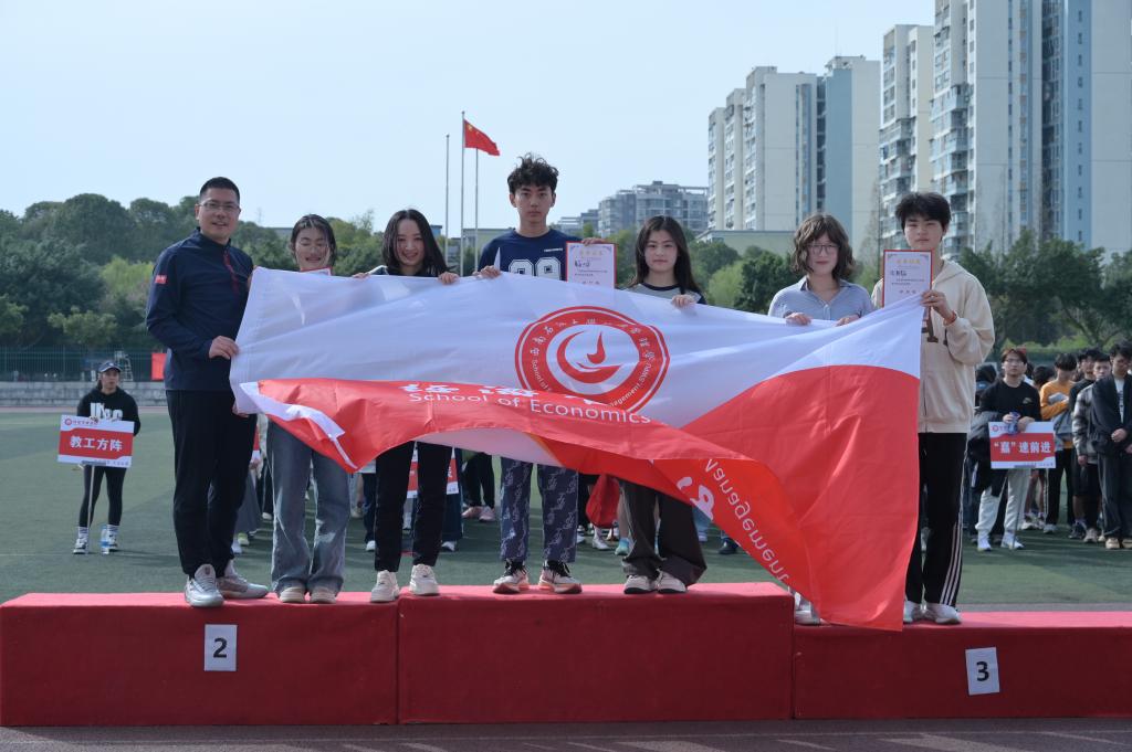 學生組方面,“星辰大海”代表隊奪得總分團體第一名,“‘袁’力覺醒”代表隊奪得團體第二名,“浩瀚星辰”代表隊獲團體第三名。經濟學2022級閆梓俊打破學院男子跳遠記錄。