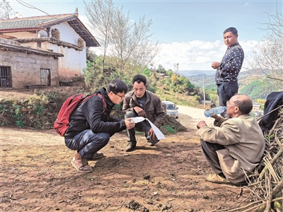 李凱(左一)在日哈鄉力史以等村開展扶貧工作