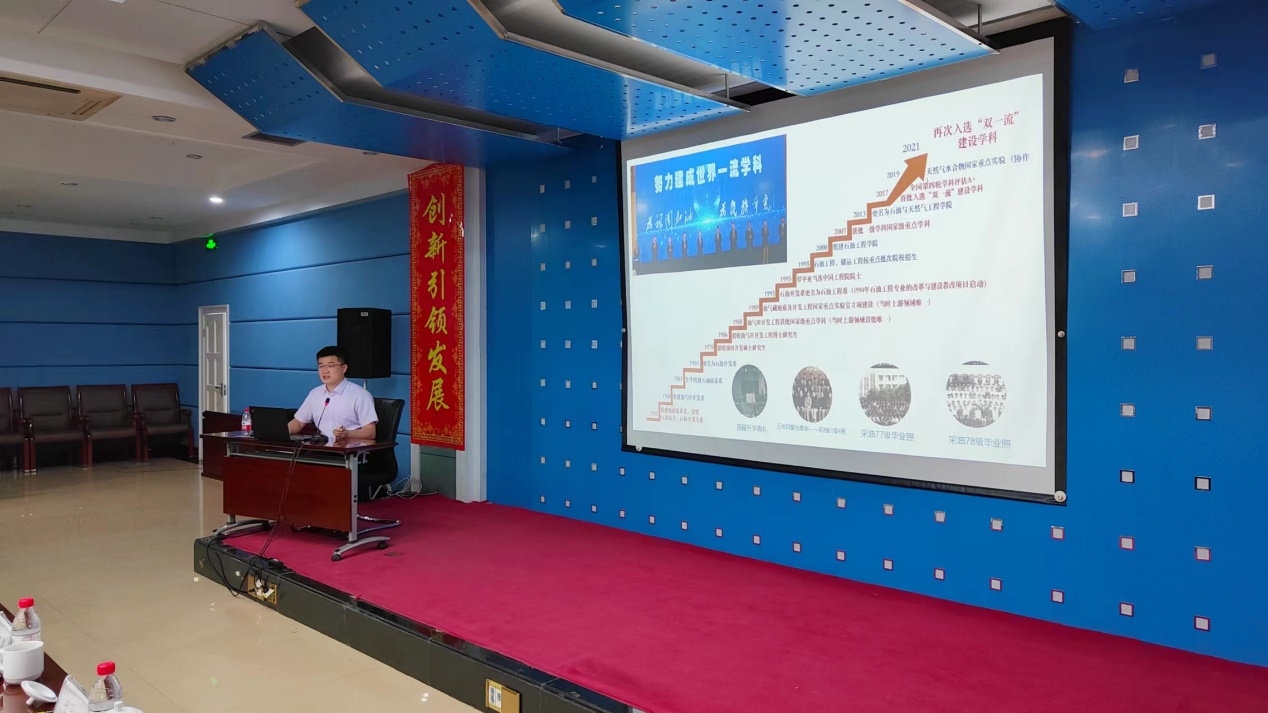 學(xué)院副院長趙玉龍對吐哈油田長期以來在學(xué)生培養(yǎng)、科研、產(chǎn)學(xué)研結(jié)合等方面給予石工院的支持和幫助表示感謝,同時介紹了石工院的基本情況和近年來在科學(xué)研究方面取得的成績。他希望,通過此次交流能夠進(jìn)一步加強(qiáng)校企合作,深挖油田油氣勘探開發(fā)中的痛點和瓶頸難題,明確現(xiàn)場技術(shù)需求,進(jìn)一步深化合作,加強(qiáng)產(chǎn)學(xué)研的有機(jī)結(jié)合,實現(xiàn)科學(xué)共同進(jìn)步與發(fā)展。