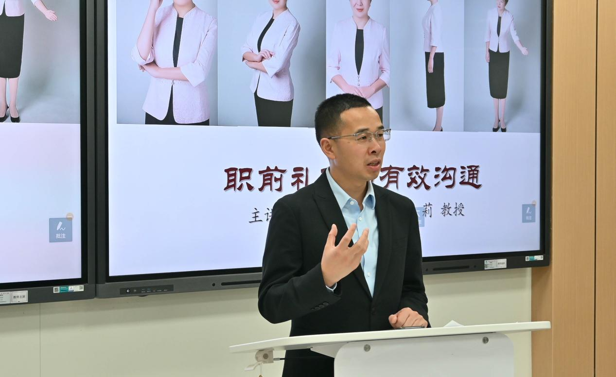 錢廣首先為同學(xué)們介紹了主講人林莉,并著重強調(diào)職場禮儀和溝通技巧在職業(yè)生活中的重要意義。