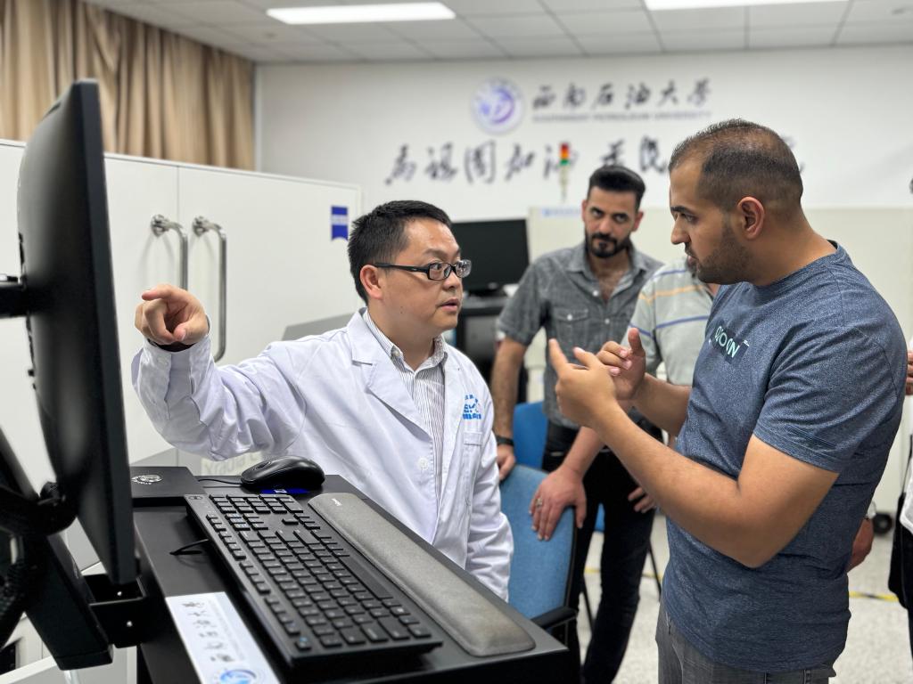 肖文聯教授(左)與伊拉克石油部學員進行技術交流