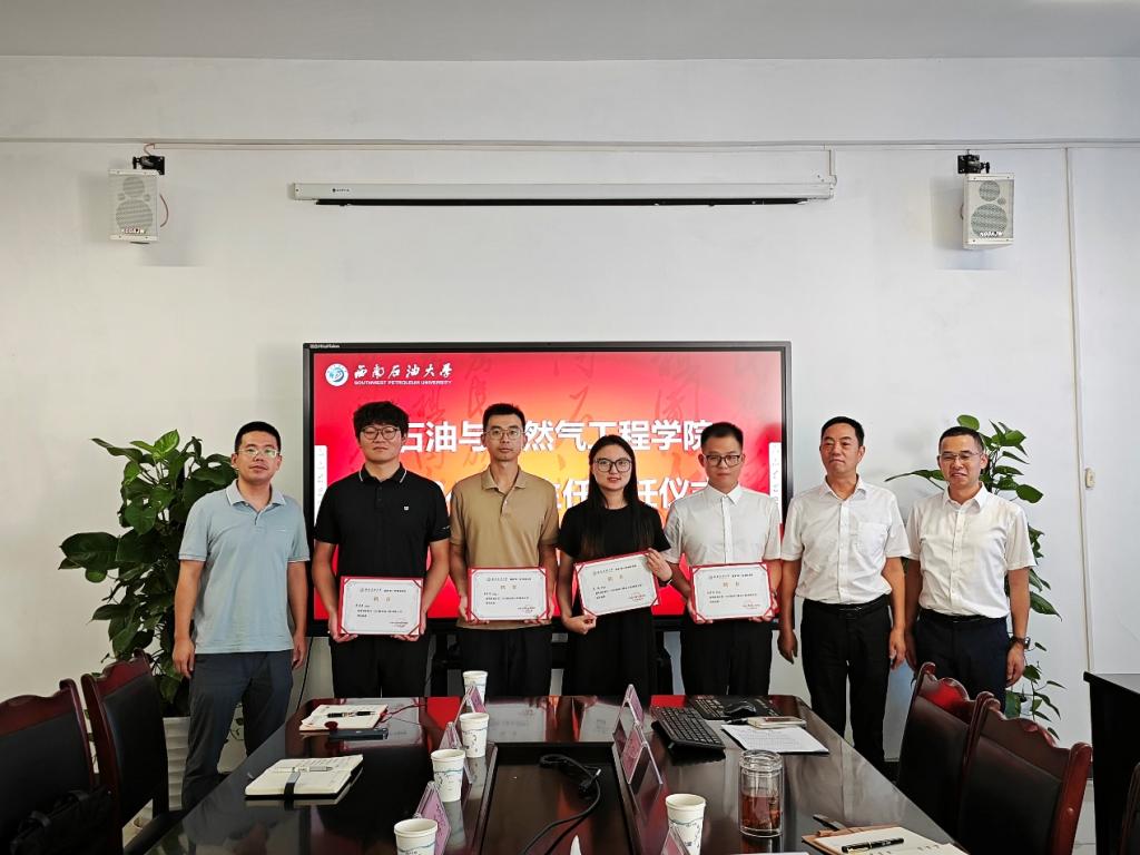 曾明友在講話中指出,本科生班主任制度是學院深入落實“三全育人”工作的重要舉措,是全面提升人才培養能力的關鍵手段。曾明友希望新聘班主任“將班主任工作當作立德樹人的事業”,第一,把握為黨育人、為國育才的原則,做好大學生思想引領,扣好第一??圩?;第二,走進課堂、走進宿舍,傾聽學生心聲,努力成為學生的人生導師和知心朋友;第三,結合專業特點和自身優勢,做學生的專業引路人,將學石油、愛石油、獻身石油的種子深植于學生心中,培養油氣行業高素質創新人才。最后,曾明友、賈文龍分別為新聘班主任頒發班主任聘書。