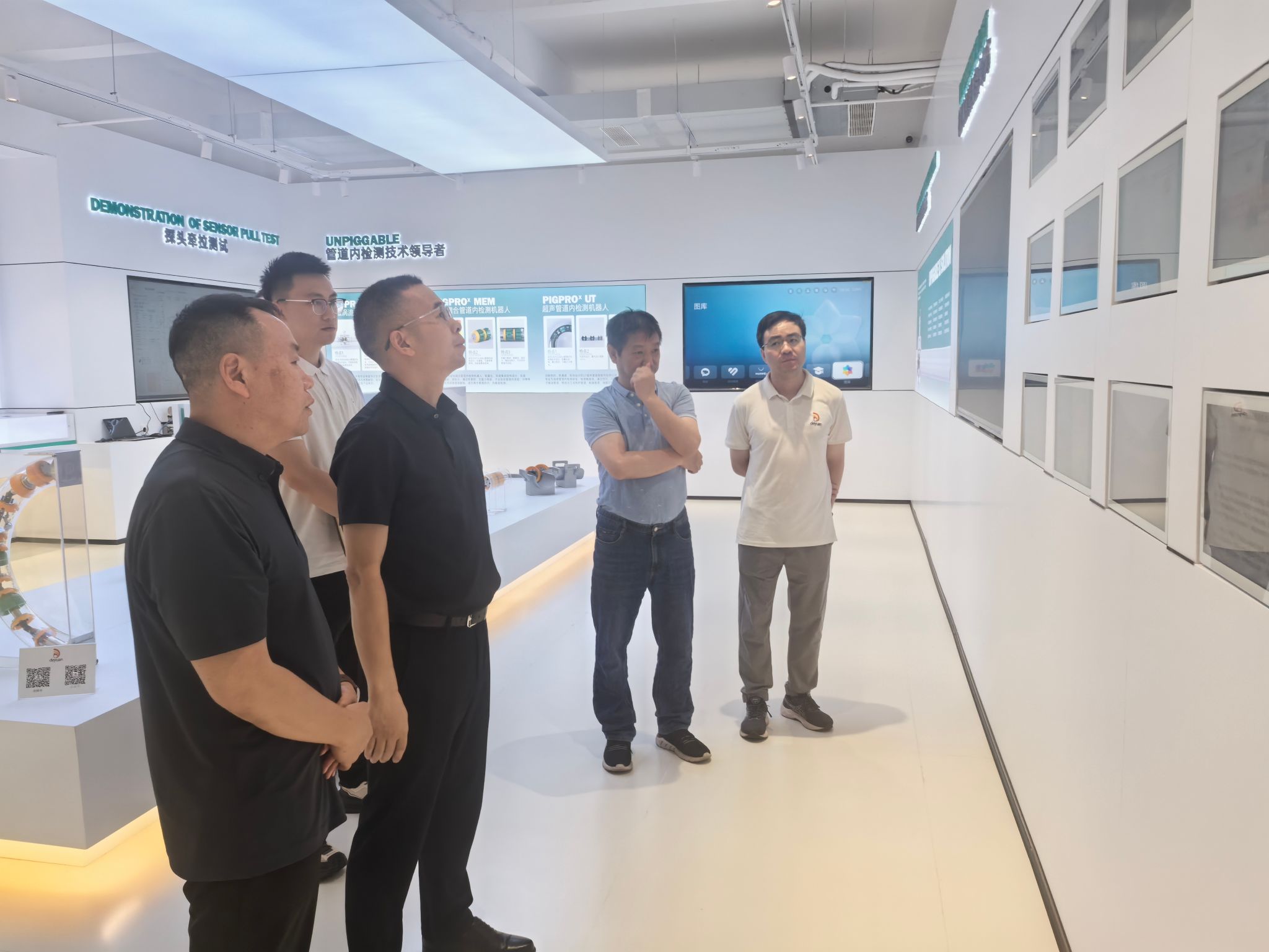 錢廣一行在四川德源負責人盧宏海、張勇的陪同下,參觀了企業的智能化生產車間,技術人員詳細介紹了管道檢測設備研發、智能監測系統應用及安全生產技術創新成果,展示了企業在能源管道領域的技術實力與行業影響力。錢廣對企業在數字化轉型和安全生產方面的探索給予高度評價,并表示學院專業設置與企業技術需求高度契合,雙方合作空間廣闊。