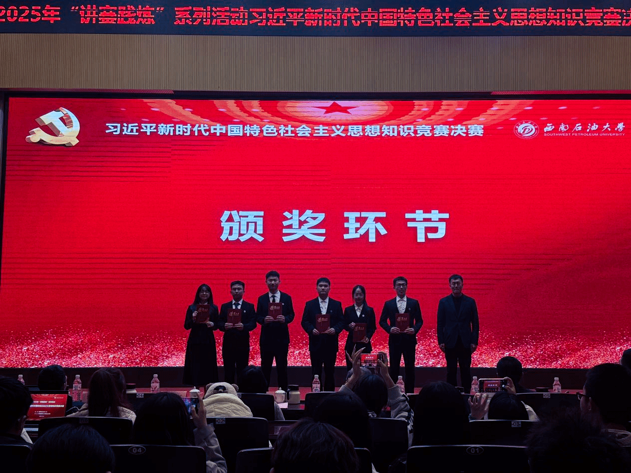 為深入學習貫徹習近平新時代中國特色社會主義思想,弘揚偉大抗戰精神,進一步豐富學生“講賽踐煉”平臺,全面提升學生政治理論素養和語言表達、邏輯思辨能力,2025年11月25日,學校在圖書館報告廳隆重舉行了“夢溪·鑄魂”大學生日常思政教育系列大賽——習近平新時代中國特色社會主義思想知識競賽決賽。由我院文雨欣、陳龍宇、王鶴達三位同學組成的“油脈薪傳”代表隊,在比賽中沉著應戰、團結協作,憑借扎實的理論功底、敏捷的思辨能力和穩定的現場發揮,歷經多輪激烈角逐,最終脫穎而出,斬獲大賽最高榮譽—特等獎,充分展現了我院學子過硬的政治素養與昂揚的精神風貌。