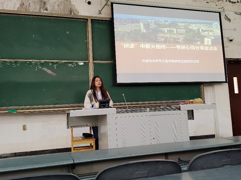 為了增加同學(xué)們對(duì)考研情況的了解,幫助正在準(zhǔn)備考研的大三同學(xué)更好地明確目標(biāo),合理規(guī)劃自己的學(xué)習(xí)及生活。石工院于3月16日下午在明辨樓C205開(kāi)展“研途”中薪火相傳——考研心得分享座談會(huì)。活動(dòng)由石油與天然氣工程學(xué)院研究生第四黨支部承辦,石工院輔導(dǎo)員謝詩(shī)雪主持會(huì)議,主要面對(duì)石工院大三學(xué)生群體開(kāi)展經(jīng)驗(yàn)分享和交流。