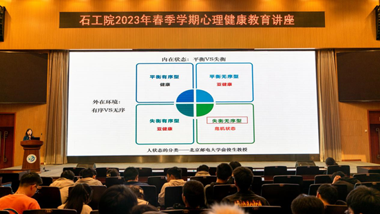 4月10日,學院邀請學校心理發展與服務中心羅賢副教授為同學們作心理健康講座。羅賢圍繞“覺察自己的核心狀態”“了解自己所處人生階段與任務”“辨識壓力來源”等方面進行詳細講解,分析到畢業生面對著學業、就業、考研準備、戀愛等多方面壓力并分享給同學們進行自我調適的方法。