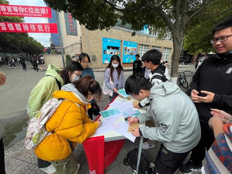 本次活動面向全校學(xué)生開展,在一食堂附近擺攤,同學(xué)們在攤位領(lǐng)取信封、信紙,書寫自己內(nèi)心的煩惱并交給攤位,攤位收集已完成“雲(yún)書”,各校交換所寫信件并進(jìn)行回復(fù)。