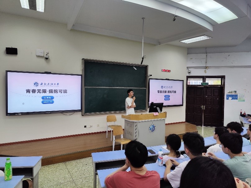 孟可雨同學從學習生活、學生工作、科研競賽及保研經驗等方面向同學們進行了分享,著重回顧了參加競賽、開放性實驗等科研競賽項目的歷程,并鼓勵大家以保研為目標,提早明確大學的奮斗方向。