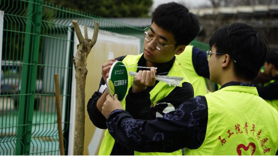 此次植樹活動按三個板塊秩序進行。前期,青志協部門在考察三期井場土壤地質后,準備好合適的樹苗以及種植工具。活動期間,植樹主負責人先向參與者展示正確種植樹苗高效實用方法,隨后分配勞動工具和位置,兩兩一組進行種植。老師和同學們互相默契地配合著,一邊交流著種植樹苗的經驗看法,一邊揮鍬鏟坑、壓土填苗、澆水潤土,整個活動流程井然有序又熱火朝天,老師同學們都干勁十足,熱情洋溢。活動接近尾聲,所有老師和同學們都幫忙收集工具,清理種植現場。經過全體人員的辛勤勞作,一顆顆小樹苗迎著這和煦的春風在這里“安家落戶”,煥發出勃勃生機。