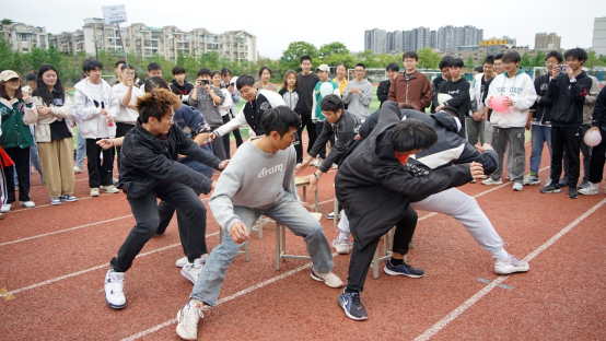 隨后,主持人帶著大家進行形式多樣的趣味游戲。活動過程中,成員們互相配合、彼此協作。一張紙,一支筆,一張撲克牌到了同學們手里便有了千變萬化的玩法;“學習鐵人-你畫我猜”,操場上的歡聲笑語此起彼伏;“薪火相傳-乒乓接力”在一陣驚呼中最后一位同學終于有驚無險地讓乒乓球完美進洞;“百煉成鋼-同心解圓”同學們八仙過海,各顯神通,團隊協調合作解開時,每個人臉上都洋溢著歡快的笑容。在游戲的過程中無形地增進了大家的感情,也為大家提供了一個強身健體、攜手合作的良好氛圍。