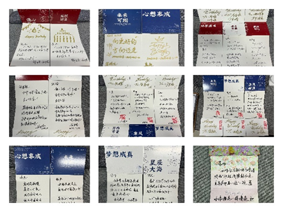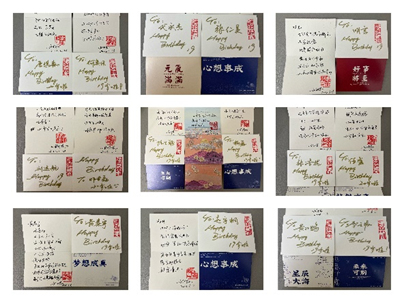 帶有專屬“印記”的幾百張賀卡,每一份都飽含著輔導員沉甸甸的祝福和心意。哪怕是轉專業過來的學生,也一個都沒有被落下,他們都收到了獨一無二的祝福!一份賀卡就是一份愛,也是蘭冰芯作為輔導員對同學們的一份鄭重承諾。