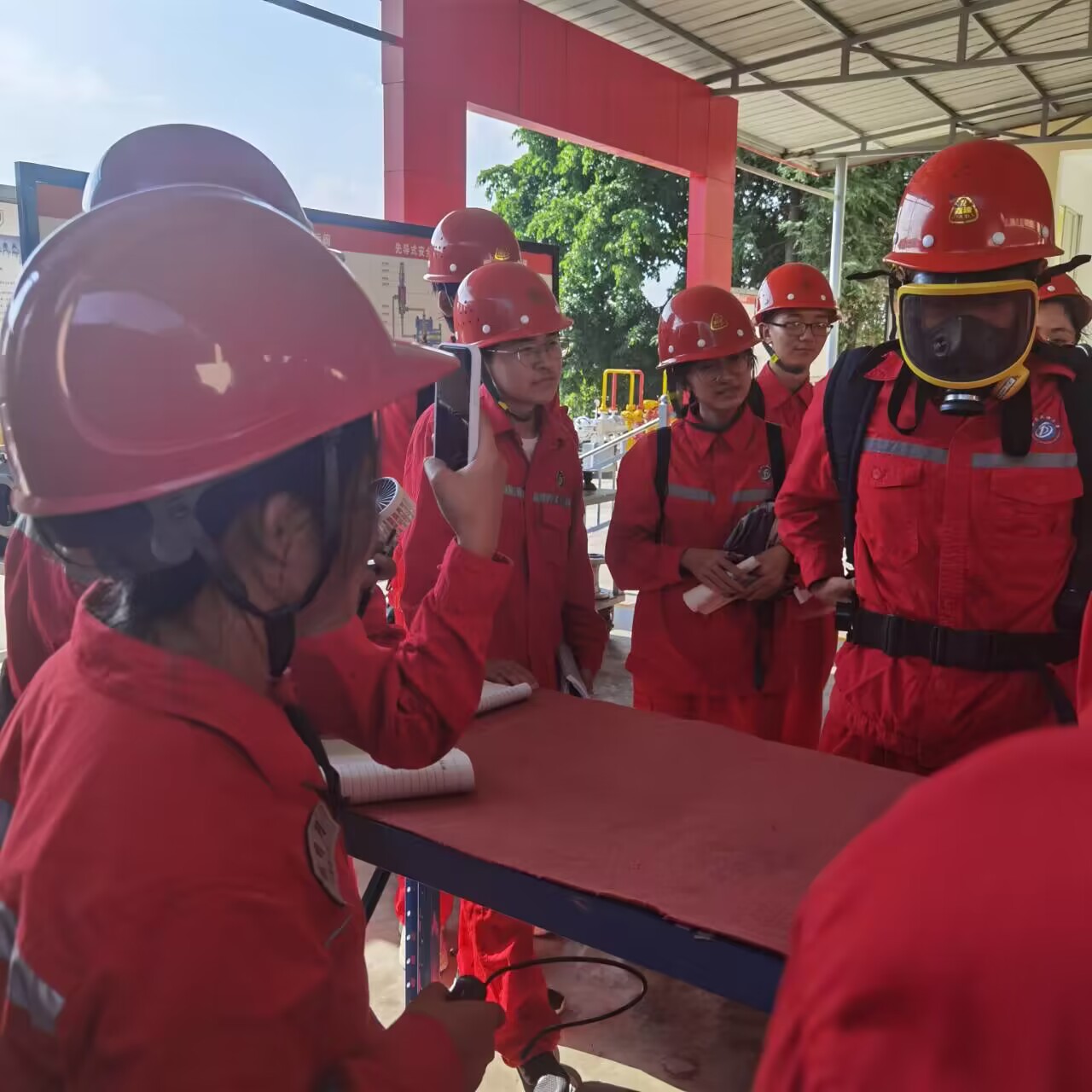 而后同學(xué)們進入了雷一1總站的員工實訓(xùn)地進一步學(xué)習(xí)如何處理硫化氫泄露事故,現(xiàn)場師傅親自為大家示范空氣呼吸機的使用方法,同學(xué)們積極參與和提問交流。最后,師傅耐心的回答了同學(xué)們的各種專業(yè)知識以及工作經(jīng)驗的問題并和同學(xué)們合影留念。