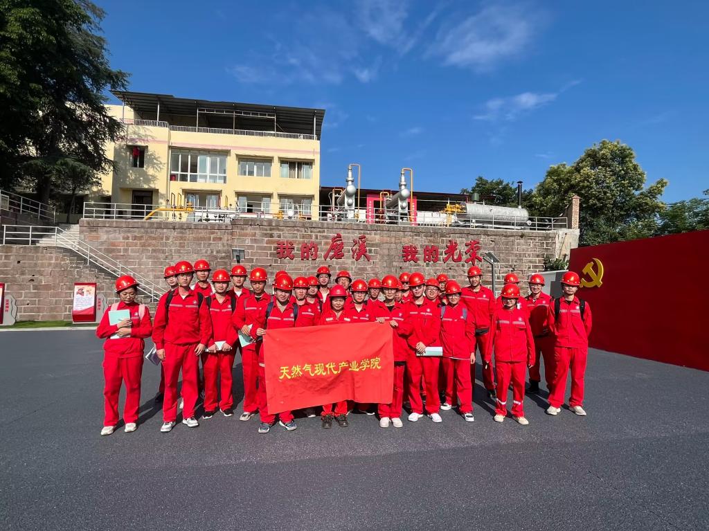 到站后,鄭師傅認真負責(zé)地向同學(xué)們講解了集氣輸氣管線的結(jié)構(gòu)、集氣流程、增壓流程和清管作業(yè)流程,還涉及到了匯管作用和緩蝕劑注入方式等知識點。通過鄭師傅對天然氣加工各個環(huán)節(jié)的介紹,同學(xué)們清楚地了解了加工天然氣的詳細步驟,以及各個環(huán)節(jié)所存在的安全隱患和防范措施,這也讓同學(xué)們更加真實的體驗生產(chǎn)工作。隨后,鄭師傅又帶著大家參觀了雷一1總站的黨風(fēng)建設(shè)基地,介紹了雷—1總站的老前輩們創(chuàng)造的輝煌成果,大家見證了陳站長是如何從一名普通員工成長為集團勞動模范,深受感觸。