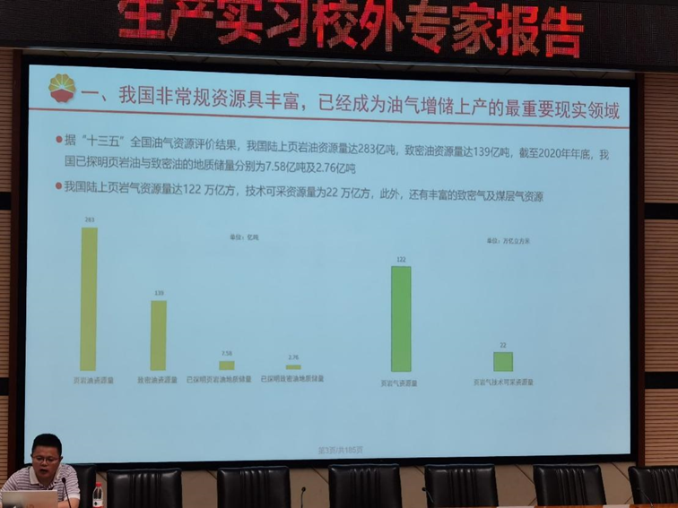 2023年6月27日,石油工程2020級生產實習二分隊在學校思學樓A114報告廳參與了西南油氣田公司頁巖氣研究院專家的專題講座,學習、探討了頁巖氣生產特征及動態分析、頁巖氣開發方案編制主要做法及有水氣藏排水采氣與頁巖氣井排采工藝等專業拓展。