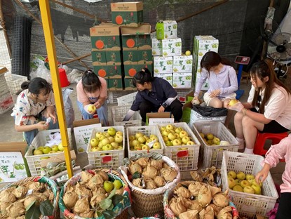 7月1、2、3日,發展觀察團來時正趕上梨園大豐收,許多梨農正忙著采摘、包裝、出口梨子。月亮坡村的梨農以種植優質的梨為特點。該地區的氣候和土壤條件非常適合梨樹的生長,因此梨農們能夠種植出口品質的梨果。月亮坡村的梨農注重品種選擇和栽培技術。他們選用了適應當地氣候的梨樹品種,如水晶梨、香梨等,以確保梨樹能夠在該地區茁壯生長并產出高質量的果實。同時,他們還會采取合適的栽培管理措施,如修剪、施肥、病蟲害防治等,以確保梨樹的健康生長。為了幫助梨農們減輕負擔,發展觀察團主動聯系了當地的梨農們向他們提供幫助。由于梨樹都種植在華鎣山上,觀察團難以上山幫忙采梨,所以提出幫助梨農們包裝梨子,以便于梨農們能快速出口新鮮的梨子。