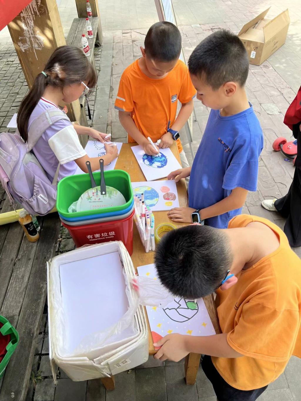 為了幫助社區(qū)推進垃圾分類建設,讓綠色低碳的理念深入人心,社會實踐隊的成員們分散在社區(qū)的各個站點,通過分發(fā)宣傳冊和手搖扇使居民了解現(xiàn)在的垃圾分類政策,其中一部分來到了社區(qū)退休活動室,向老人簡單地介紹宣傳冊上的內(nèi)容。同時,社會實踐隊的成員們自發(fā)地邀請小朋友來到宣傳攤位前,通過繪畫的方式,鼓勵他們將自己心中的環(huán)保意識以圖畫的形式展示出來。