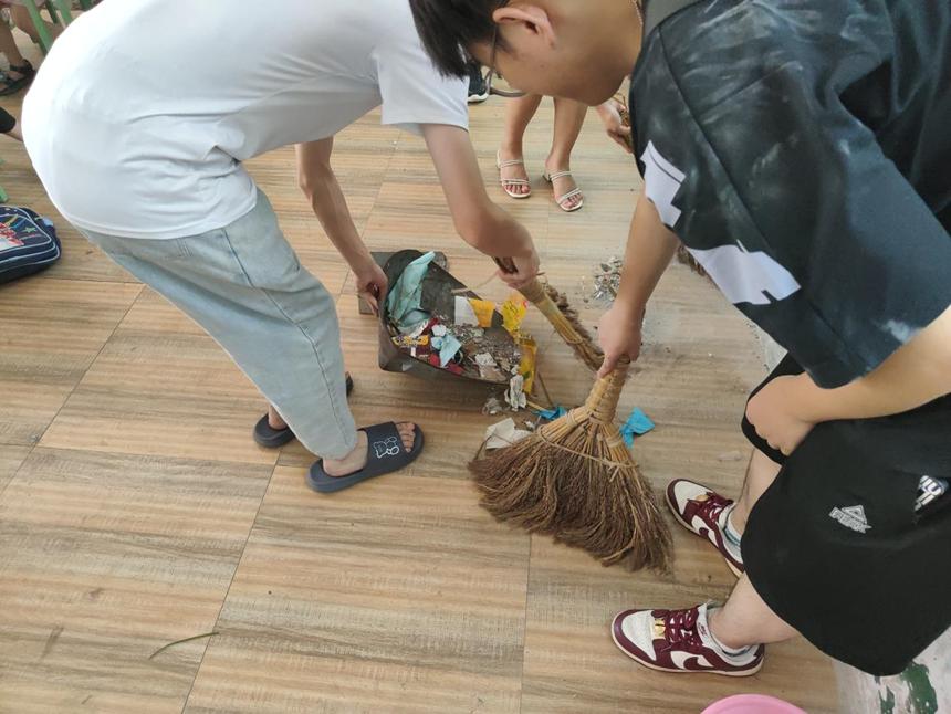 課前支教小隊和一年級的同學們一起參與了教室的清掃工作,并共同將座椅擺放整齊。在這個過程中,志愿者們展現了積極的態度和責任心,將自己當做了教室的小主人,共同維護教室的清潔和整潔。大家一起打掃教室的時候,每個人都積極參與,有的同學清掃地面,有的同學擦拭桌椅,還有的同學整理教具和書籍。大家互相合作,相互協助,共同完成了任務。在清掃的過程中,同學們認真細致地清理每一個角落,確保教室整潔無塵。在座椅擺放的過程中,認真擺放座位的位置保持整齊劃一。大家一同努力,讓教室煥然一新,為接下來的學習創造了一個舒適和整潔的環境。通過共同參與打掃教室和整理座椅,志愿者們希望教會同學關心和愛護自己的學習環境,及培養集體榮譽感和責任感。他們明白只有每個人都盡自己的一份力量,才能共同創造一個良好的學習氛圍。