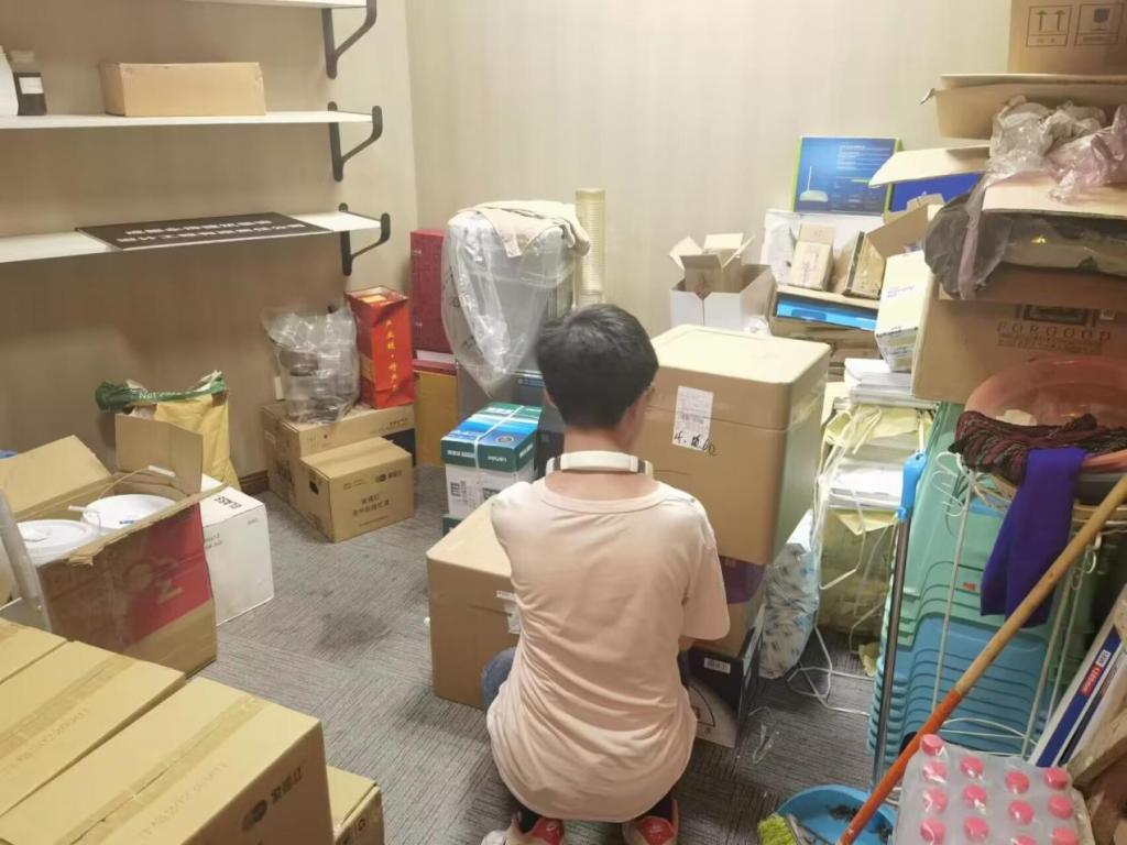 實踐隊的隊員在庫房進行勞動