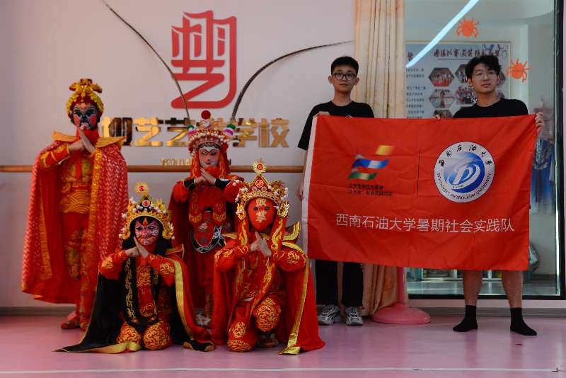 首先,觀察團(tuán)參觀了當(dāng)?shù)氐蔫蛩囁囆g(shù)學(xué)校,感受傳統(tǒng)文化的博大精深。在這里,隊(duì)員們被變幻莫測(cè)的川劇變臉表演所吸引,更為表演者平均8歲的年齡而驚訝嘆服。川劇作為漢族戲曲劇種之一,僅在四川東中部、重慶及貴州、云南部分地區(qū)流行。川劇臉譜,更是歷代川劇藝人共同創(chuàng)造并傳承下來的藝術(shù)瑰寶。這些年輕的表演者在敏捷靈巧的變換中,傳遞的不僅僅是傳統(tǒng)文化源遠(yuǎn)流長(zhǎng)的精神,更是古典與新生的碰撞融合。藝術(shù)學(xué)校的彭老師熱情地向我們介紹她的學(xué)生們,同時(shí)她也很欣慰,能夠?yàn)榇▌∽兡樀膫鞒胸暙I(xiàn)一份力量。走進(jìn)鄉(xiāng)村,領(lǐng)悟傳統(tǒng)文化在當(dāng)下展現(xiàn)的獨(dú)特魅力,感受時(shí)光在這里停駐。