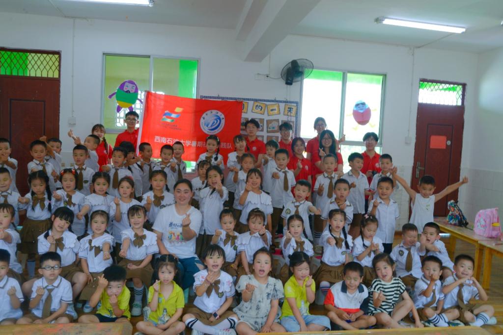 接著,團(tuán)隊(duì)前往當(dāng)?shù)匾凰變簣@進(jìn)行義務(wù)勞動(dòng)并開展支教活動(dòng)。步入學(xué)校時(shí),恰逢學(xué)校開展畢業(yè)典禮,隊(duì)員們便化身愛心志愿者,積極為老師們分憂解難。懸掛的多彩氣球、層層鋪好的地毯、整齊排列的桌椅、以及老師和隊(duì)員們臉上的汗水,無不體現(xiàn)出學(xué)校對(duì)于典禮的獨(dú)特策劃和認(rèn)真對(duì)待。剛結(jié)束手頭的勞動(dòng),隊(duì)員們又擔(dān)當(dāng)起老師的職位,為小朋友們帶來了精心準(zhǔn)備的繪畫課和音樂課。面對(duì)團(tuán)隊(duì)的到來,小朋友們都十分積極,在繪畫課上爭(zhēng)相展示自己的作品,在音樂課上爭(zhēng)當(dāng)校園小歌手。短暫的幼兒園老師體驗(yàn),卻讓隊(duì)員們和小朋友在分別時(shí)都戀戀不舍。走進(jìn)鄉(xiāng)村,關(guān)注當(dāng)?shù)貎和逃龁栴},體驗(yàn)獨(dú)特的教學(xué)經(jīng)歷。