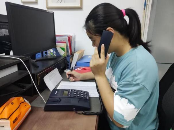 圖 2 實踐隊員撥打電話了解教職工婚育情況