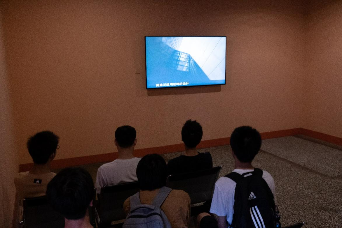 圖為實踐團成員觀看紅色影片