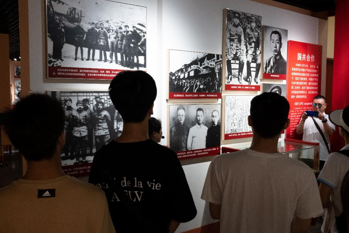 調研團成員首先與負責人進行了簡短的交流,在說明來意之后,負責人表示很欣慰越來越多的人開始重視紅色文化,一番話也讓團隊成員備感榮幸,也深知自己責任重大。在講解員的帶領下,“必油之路紅色精神”實踐團成員首先走進了正面戰場館“張,楊兩將軍,發電抗日,但老蔣卻說:‘此電突發,莫名其妙’。兩將軍在中國共產黨抗日民族統一戰線和全國抗日救亡運動的影響下,發動了西安事變,中國共產黨力主和平解決西安事變,最終實現國共第二次合作,成為了國內戰爭走向抗日民族戰爭的轉折點。”聽著講解員聲情并茂的講解,團隊成員們的敬佩之情油然而起。“西安事變”雖然已經成為歷史,但革命先輩當年那種不怕犧牲、敢于和強敵作斗爭的英勇氣概,至今仍激勵著人們在不斷深化改革、實現中華民族偉大復興的道路上,團結奮進,砥礪前行。