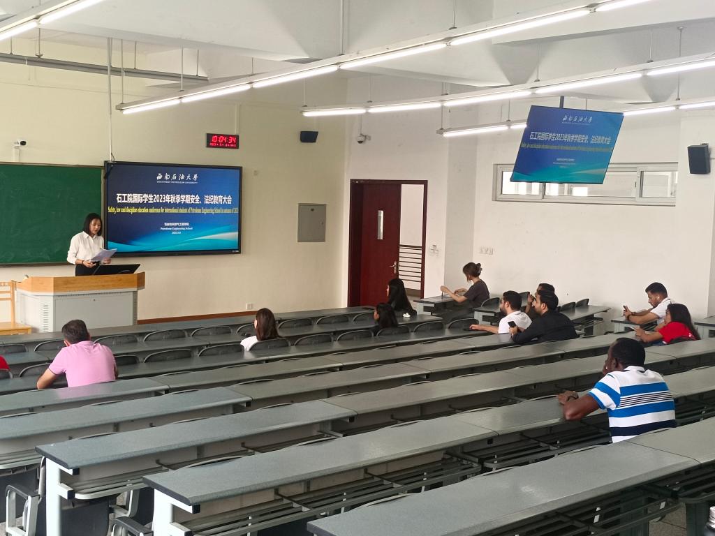 為進(jìn)一步加強(qiáng)新學(xué)期國際學(xué)生法紀(jì)教育與日常安全管理,增強(qiáng)國際學(xué)生在校行為規(guī)范化,9月8日上午10點(diǎn),石工院于明辨樓C504召開國際學(xué)生新學(xué)期安全、法紀(jì)教育大會。石工院國際學(xué)生輔導(dǎo)員魯尹婕主持會議,國際學(xué)生班導(dǎo)生陸心雨、姜培帥以及石工院全體在校國際學(xué)生參加會議。