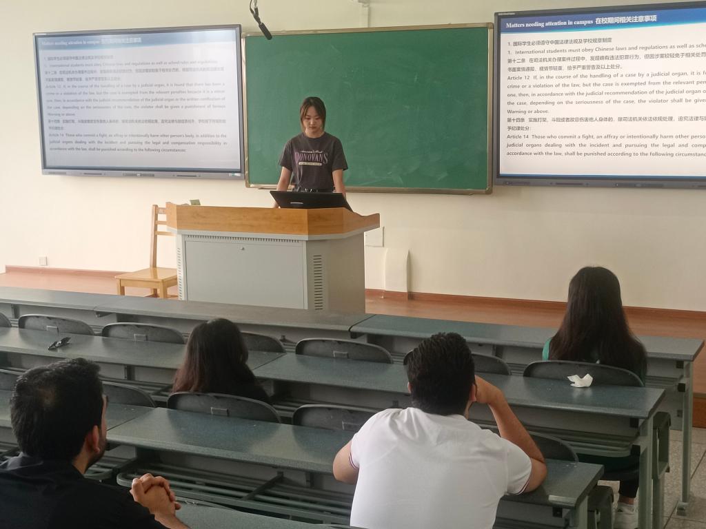 國際學(xué)生班導(dǎo)生陸心雨講解在校期間注意事項(xiàng)