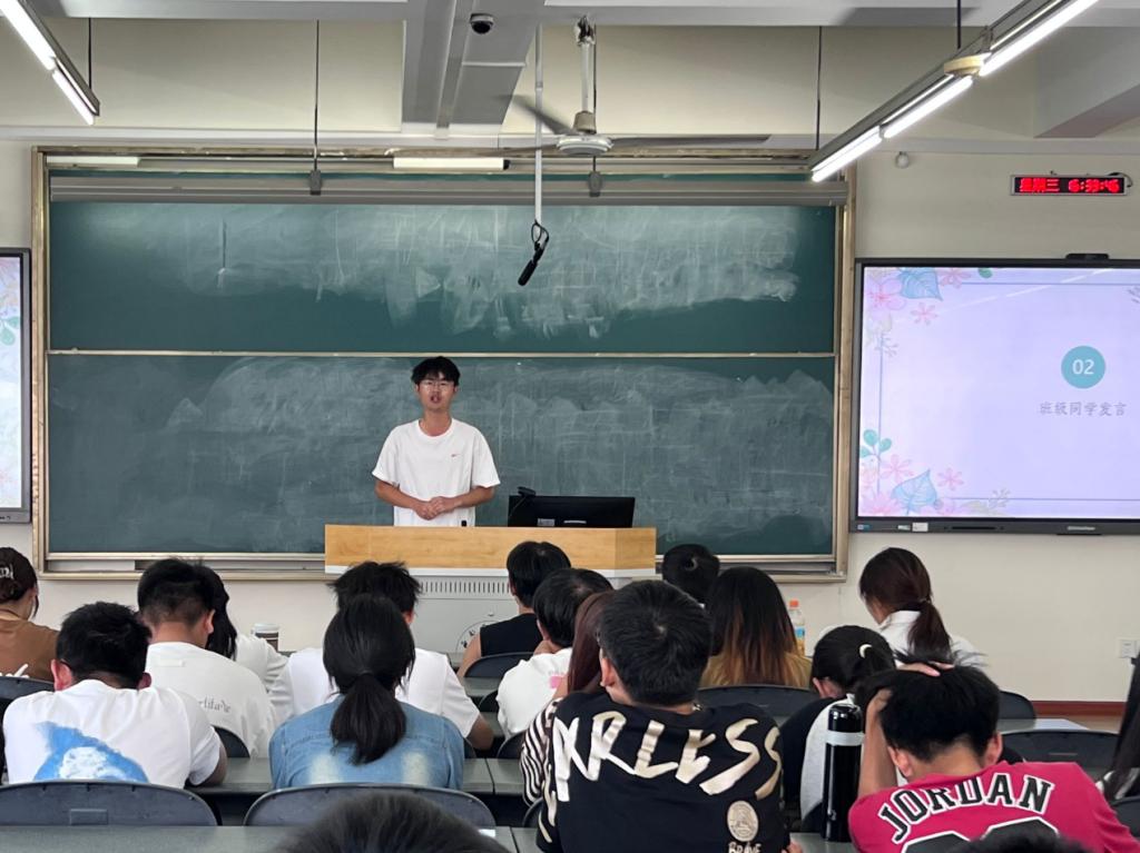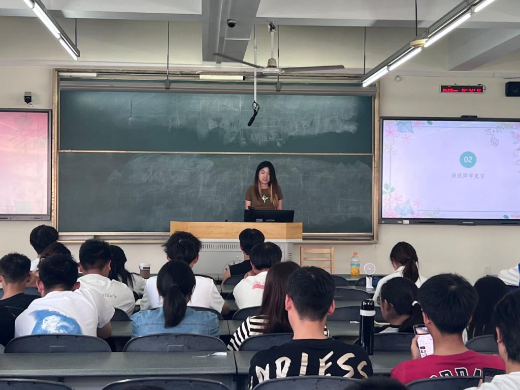 班會(huì)伊始,班長(zhǎng)廖峻針對(duì)本班第一學(xué)年的學(xué)分績(jī)點(diǎn)、英語(yǔ)四六級(jí)通過(guò)率進(jìn)行了分析總結(jié),將數(shù)據(jù)表格直觀化并與本專(zhuān)業(yè)其他班級(jí)進(jìn)行了對(duì)比。引導(dǎo)同學(xué)們加強(qiáng)學(xué)習(xí)自律性,發(fā)揚(yáng)互幫互助、共同進(jìn)步的“雙贏”精神。隨后,團(tuán)支書(shū)、學(xué)習(xí)委員、科技委員等班委依次上臺(tái)總結(jié)班委工作。團(tuán)支書(shū)文雨欣對(duì)于本班同學(xué)在團(tuán)學(xué)工作上的支持配合給予肯定與感謝,她說(shuō)道:“經(jīng)過(guò)一年的磨合,我與大家在團(tuán)學(xué)工作上的對(duì)接配合也越來(lái)越默契,希望在今后的學(xué)習(xí)工作中大家仍能保持初心,彼此勉勵(lì)前行!”最后,同學(xué)逐個(gè)上臺(tái)發(fā)言,同學(xué)們根據(jù)自身情況分享了個(gè)人學(xué)習(xí)方法、放松方式以及對(duì)大學(xué)的感悟。其中,英語(yǔ)四六級(jí)均高分過(guò)的李志翔同學(xué)上臺(tái)與大家交流了英語(yǔ)學(xué)習(xí)方法與備考經(jīng)驗(yàn);暑期組織支教并擔(dān)任支教隊(duì)長(zhǎng)的王炳科同學(xué)上臺(tái)與大家講述了支教的所見(jiàn)所聞,鼓勵(lì)大家積極參與志愿活動(dòng);堅(jiān)持練習(xí)街舞的唐昌君同學(xué)則上臺(tái)與大家分享了她大學(xué)利用課余時(shí)間練習(xí)街舞的經(jīng)歷,證明了學(xué)習(xí)之余盡可發(fā)展自己的興趣愛(ài)好。