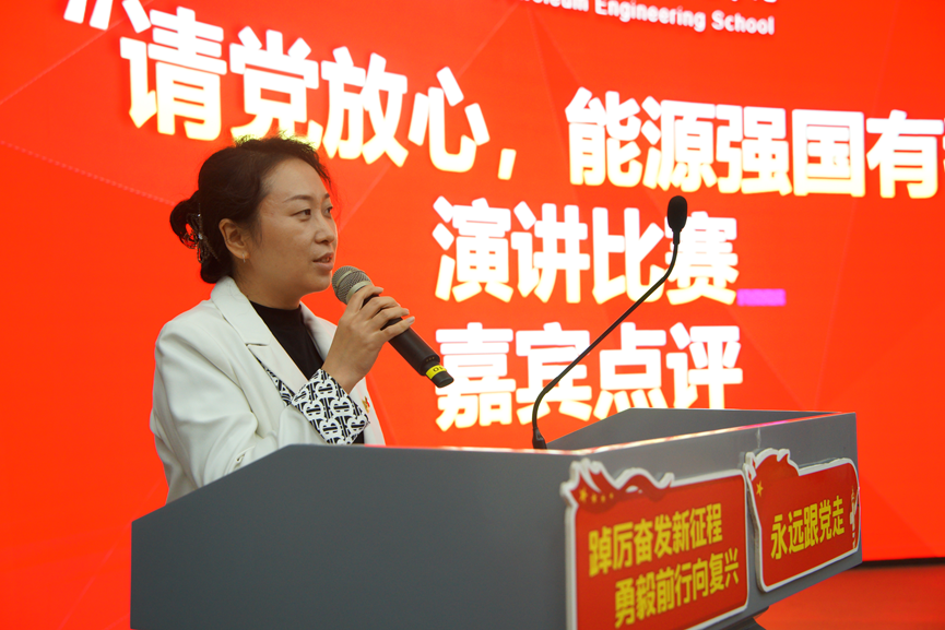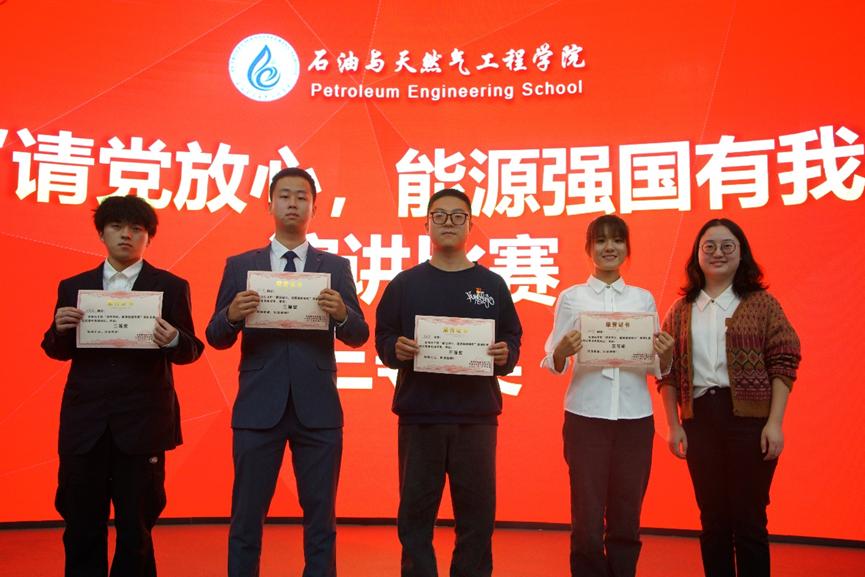 比賽現(xiàn)場(chǎng),各選手緊緊圍繞演講主題,飽含深情、慷慨激昂地講述者自己對(duì)能源強(qiáng)國(guó)的理解與感悟。從身邊的點(diǎn)滴小事到學(xué)習(xí)和貫徹黨和國(guó)家的方針政策,從身邊的親身經(jīng)歷聯(lián)系到老一輩石油人和共產(chǎn)黨人為國(guó)家能源建設(shè)前赴后繼的事跡,他們傾訴真情、表達(dá)決心。演講比賽現(xiàn)場(chǎng)氣氛熱烈,同學(xué)們熱情高漲。參賽選手以飽滿的激情、激昂的語(yǔ)調(diào)感染了現(xiàn)場(chǎng)評(píng)委和觀眾。