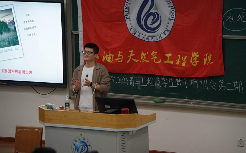 為進(jìn)一步加強(qiáng)我院學(xué)生心理健康教育,增強(qiáng)學(xué)生心理壓力調(diào)適能力,促進(jìn)學(xué)生樹(shù)立健康理念,養(yǎng)成健康生活方式。10月27日,石工院在思學(xué)樓B210召開(kāi)2023-2024年度第二期“青馬工程”培訓(xùn)班及干部培訓(xùn)。本次培訓(xùn),特邀心理發(fā)展服務(wù)中心樊玉騁和校醫(yī)院辦公室廖香瓊兩位老師主講,學(xué)院全體青馬工程學(xué)員、團(tuán)委學(xué)生會(huì)、研究生會(huì)學(xué)生骨干及研究生班長(zhǎng)代表參加。