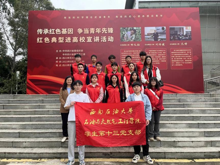 圍繞用黨的科學理論武裝青年,用黨的初心使命感召青年的主題,中共四川省委組織部、中共四川省委教育工委牽頭舉辦了“傳承紅色基因,爭當青年先鋒——紅色典型進高校宣講”活動。9月27日,石工院學生第十三黨支部、碩士第八黨支部受邀參加赴四川師范大學參與本次活動。