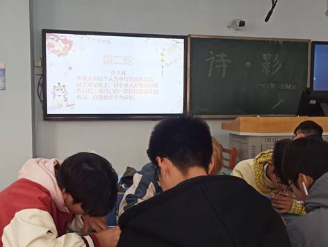 華夏文明,璀璨奪目,詩詞歌賦,熠熠生輝,中國文化源遠流長、代代相傳。為傳承中華詩詞之美,加強石工院心理服務站部門聯系和心理鏈接,2023年11月18日下午,服務站于思學樓C303教室中開展了站內主題活動——詩?影。