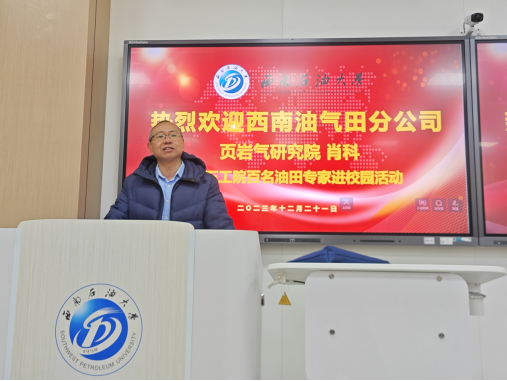 為著力推進本碩博一體化教育,推動構建校企聯合育人共同體,12月21日下午,石工院在思學樓A111舉行“百名油田專家總工進班級”第十場活動,主講嘉賓是四川頁巖氣公司副總工程師肖科。活動由2022級輔導員費冬主持,2022級油氣儲運工程卓越5班全體同學參加。