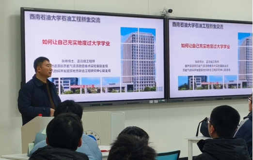 張燁,現(xiàn)任重慶地質(zhì)礦產(chǎn)研究院頁巖氣分院院長,正高級工程師、研究員,主要從事頁巖氣勘探開發(fā),具有豐富的頁巖氣開采經(jīng)驗和油田現(xiàn)場實(shí)踐經(jīng)歷。張燁在百忙之中從重慶趕來學(xué)校,走進(jìn)班級與同學(xué)們見面交流,并圍繞“如何讓自己充實(shí)地度過大學(xué)學(xué)業(yè)”主題,分別從學(xué)科知識,職業(yè)素養(yǎng),態(tài)度品質(zhì),職業(yè)規(guī)劃四個方面展開交流。他談到:在大學(xué)期間,同學(xué)們應(yīng)珍惜韶華,建立明確的奮斗目標(biāo),豐富學(xué)科知識、提高心理抗壓能力及全方面品質(zhì)。在自由交流環(huán)節(jié),石油工程2023級鄧子涵等多位同學(xué)就學(xué)業(yè)規(guī)劃和職業(yè)發(fā)展問題向張燁請教,現(xiàn)場氛圍活躍。