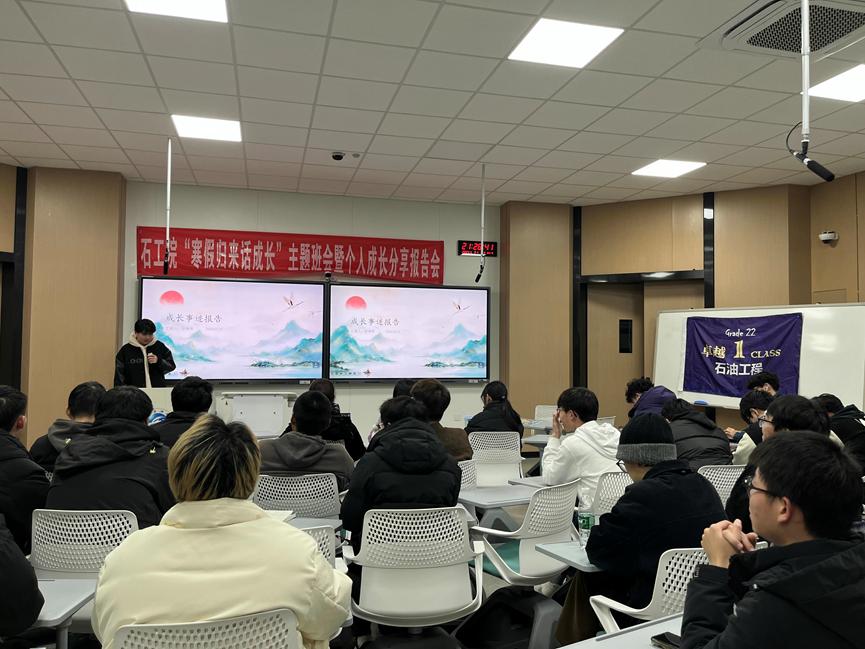 龍行龖龖新學期,熱辣滾燙啟新篇。為總結過去,分享寒假生活,蓄力新學期。3月7日晚,石油工程2022級卓越1班于思學樓A109開展“實踐歸來話成長”主題班會。此次班會由班長高昌瑞主持,輔導員蘭冰芯參會,班級同學通過ppt進行展示,包括上學期總結、寒假實踐活動開展情況以及本學期規劃等。