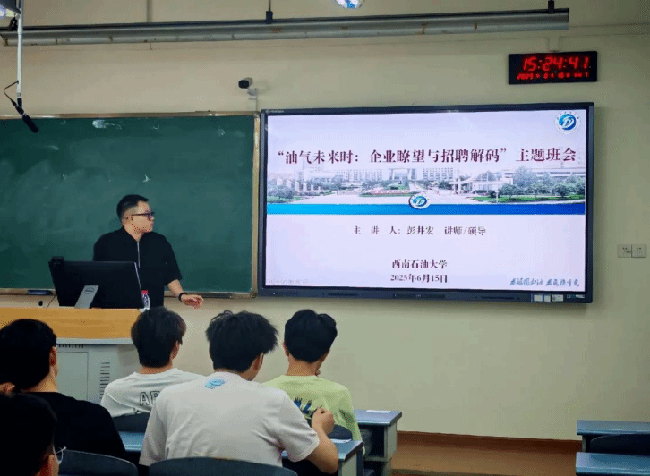 彭井宏強調(diào)本次活動的重要意義。他以豐富的行業(yè)數(shù)據(jù)為支撐,帶領(lǐng)同學(xué)們深入剖析國家管網(wǎng)、中國石油等與專業(yè)緊密相關(guān)企業(yè)的發(fā)展現(xiàn)狀、業(yè)務(wù)布局以及人才需求特點,鼓勵同學(xué)們要把握當(dāng)下,積極探索行業(yè)領(lǐng)域,為未來的職業(yè)發(fā)展做好充分準(zhǔn)備,真摯的話語中飽含著對同學(xué)們的殷切期望。