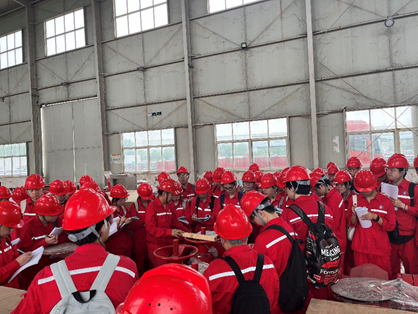 隨后來到倉庫外管柱存放區(qū),師傅為同學(xué)們講解油管、套管、鉆桿的相關(guān)知識。從管材的材質(zhì)特性、規(guī)格型號,到在鉆井作業(yè)中的具體用途以及舊鉆桿的回收,師傅都一一進(jìn)行了細(xì)致說明。最后,師傅耐心解答了同學(xué)們關(guān)于日常工作內(nèi)容以及配送發(fā)貨流程的疑問,讓大家對物資配送中心的運(yùn)營有了更全面的認(rèn)識。