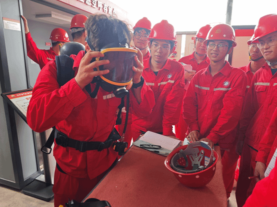 當日下午,實踐教學進入核心操作階段。在老師傅嚴密監護下,在“陳本學練兵場”中,學員們首次親手轉動采氣樹閥門,了解不同閥門的作用,隨后,在師傅的講解和親自體驗下學會了應急空呼的工作原理和實際應用。體會到了應急空呼在有毒環境的生命屏障作用。最后,在工程師的操作下,再一次講解了高級孔板閥的內部結構,并且講解了高級孔板閥的檢修流程,嚴苛的檢修標準讓學子們深刻體認能源裝備的國之重器分量。