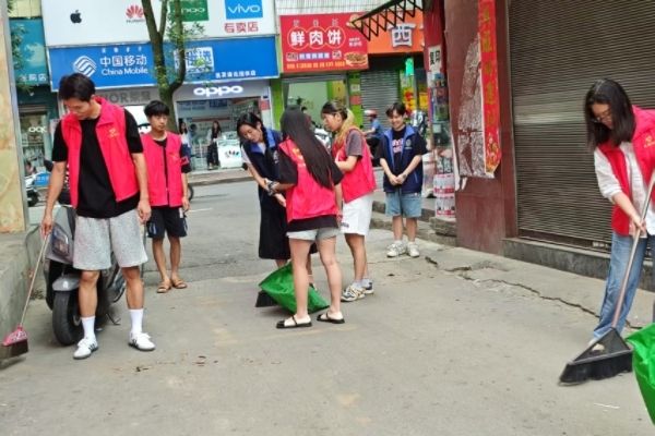 投身實踐,社區環境煥新顏。活動開始隊員們拿起掃帚、鐵鍬等工具,投身于社區主干道及衛生死角的清潔行動中。隊員們分工協作,認真清掃路面垃圾、拔除雜草、清運堆積雜物,烈日下的顆顆汗水,換來了社區道路的整潔與暢通。 “雖然辛苦,但看到煥然一新的環境,居民們露出的笑容,就覺得特別值得?!瘪T詩益一邊擦拭汗水一邊感慨。實踐隊員們用雙手為社區“梳洗打扮”,讓社區環境煥發新光彩。