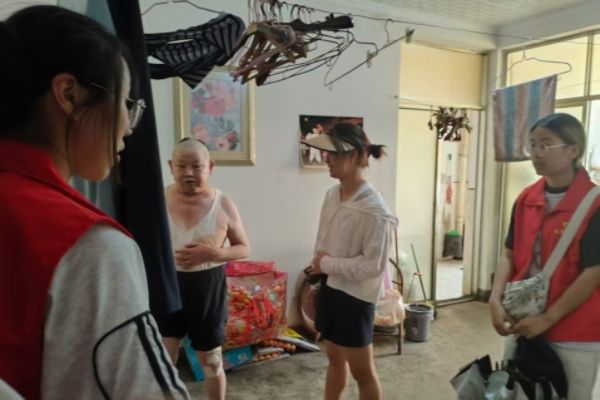 入戶走訪,心系民情暖人心。隊員們走進居民家中開展入戶走訪,傾聽他們的生活故事,了解他們的困難與需求。隊員們一起探望社區里的獨居老人。在劉爺爺家,隊員們不僅陪老人聊天解悶,更卷起袖子,幫助整理房間、擦拭家具。看著整潔一新的屋子,劉爺爺感動地拉著隊員的手說道:“謝謝你們,我這屋子好久沒這么亮堂了,心里也暖和!”實踐隊用行動詮釋了尊老敬老的傳統美德。