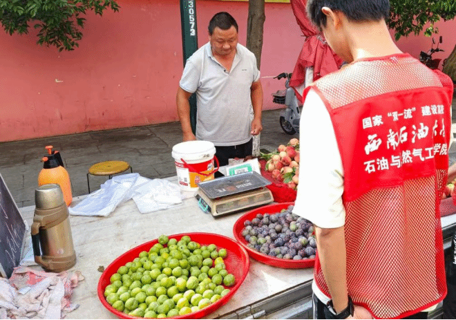 為助力社區便民服務,減輕水果攤主的經營負擔,營造整潔有序的擺攤環境,7月17日,西南石油大學石工院正因“微光”暑期社會實踐隊走進四川省成都市黃土社區,開展了一場幫助當地水果攤主整理攤位的志愿活動。這次實踐活動不僅讓水果攤位變得整齊規范,方便了居民選購,也讓隊員們在實踐中體會到小商販的經營不易,為培養服務社會的意識注入了動力。