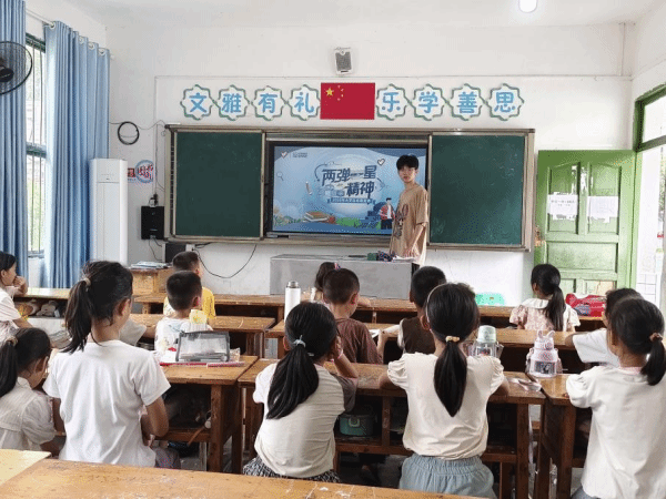 7月22日,水落小學(xué)校的教室里傳來陣陣歡笑,一場專為一、二年級共21名小學(xué)生設(shè)計的核能與碳達(dá)峰?碳中和宣講活動在此開展。實踐隊通過趣味互動,將“核”與“碳”的科學(xué)知識傳遞給孩子們。