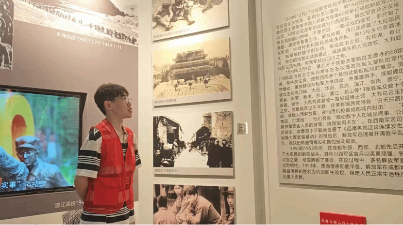 另一部分隊(duì)員則擔(dān)任起義務(wù)講解員的角色,為前來參觀的游客們講述烈士們的英勇事跡。從革命戰(zhàn)爭年代的艱苦卓絕,到烈士們?yōu)榱死硐胄拍钌嵘赖膲雅e,隊(duì)員們生動(dòng)的講解,讓游客們仿佛穿越時(shí)空,真切感受到那段波瀾壯闊的歷史。在講解過程中,隊(duì)員們也進(jìn)一步加深了對烈士精神的理解與感悟。