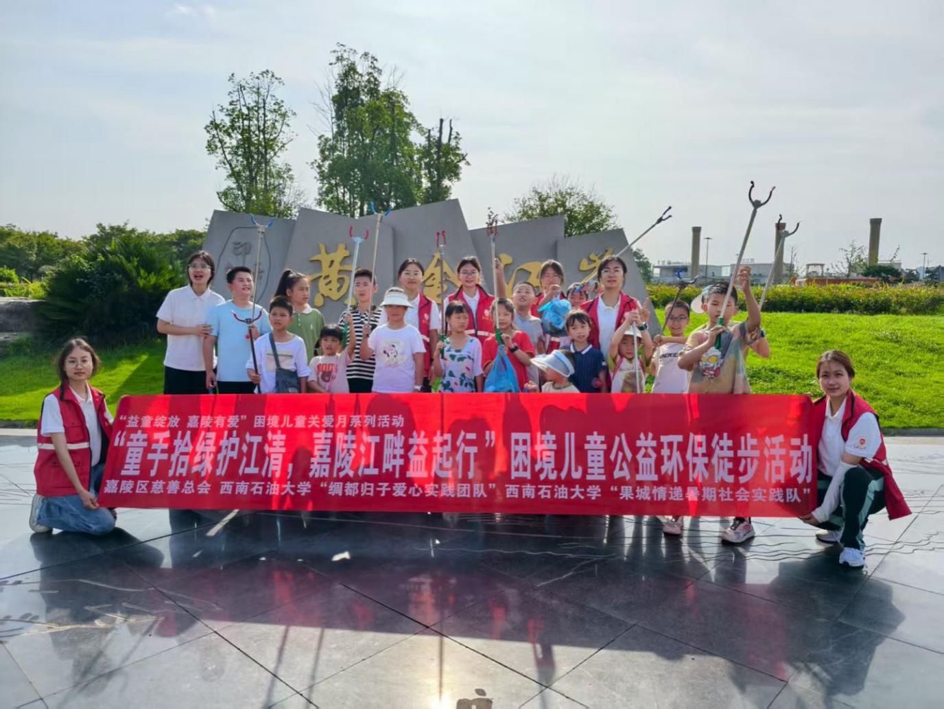7 月 20 日,驕陽似火,但這絲毫沒有阻擋黃蓮灣社區孩子們參與環保實踐的熱情。當天上午 8 時,由西南石油大學暑期社會實踐隊的隊員們帶領 20 余名兒童,開展了 “童手拾綠護江清,嘉陵江畔益起行”困境兒童公益環保徒步活動,用實際行動踐行環保理念。